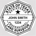 Official layout for the Registered Professional Land Surveyor Stamp for the State of Texas. Circular with Plate size diameter max 1-5/8". more…
